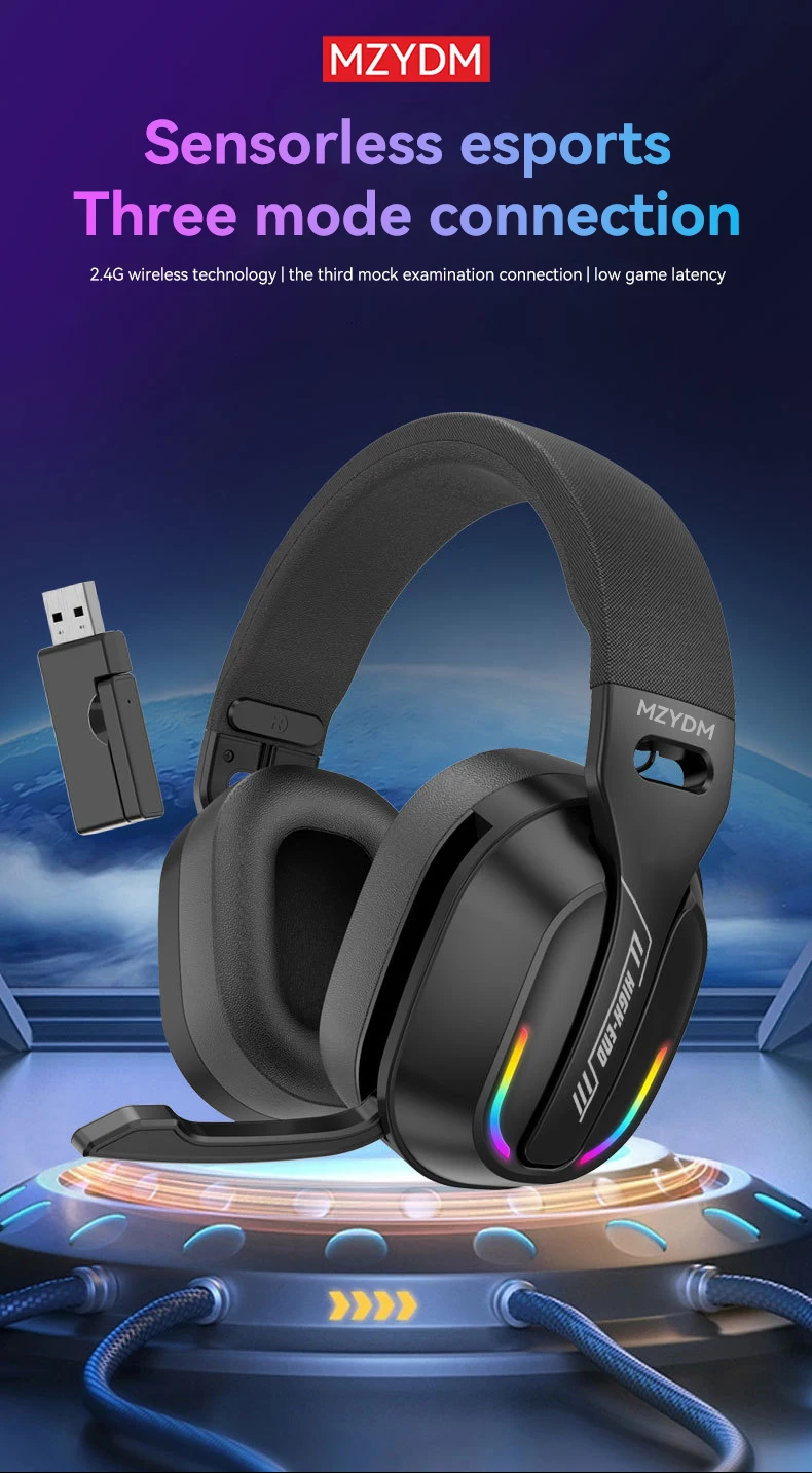 Wireless Gaming Headset: 2.4G/Wired/Bluetooth Headphones 3 Modes, Bendable HD Mic, Soft Ear Pads, Immersive Sound for PC/PS4/PS5
