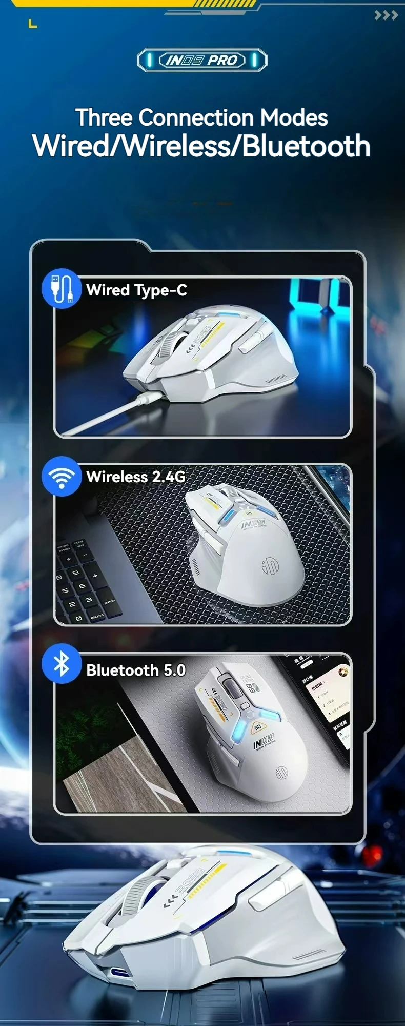 Connection Methods: Wired/2.4G/Bluetooth 5.0