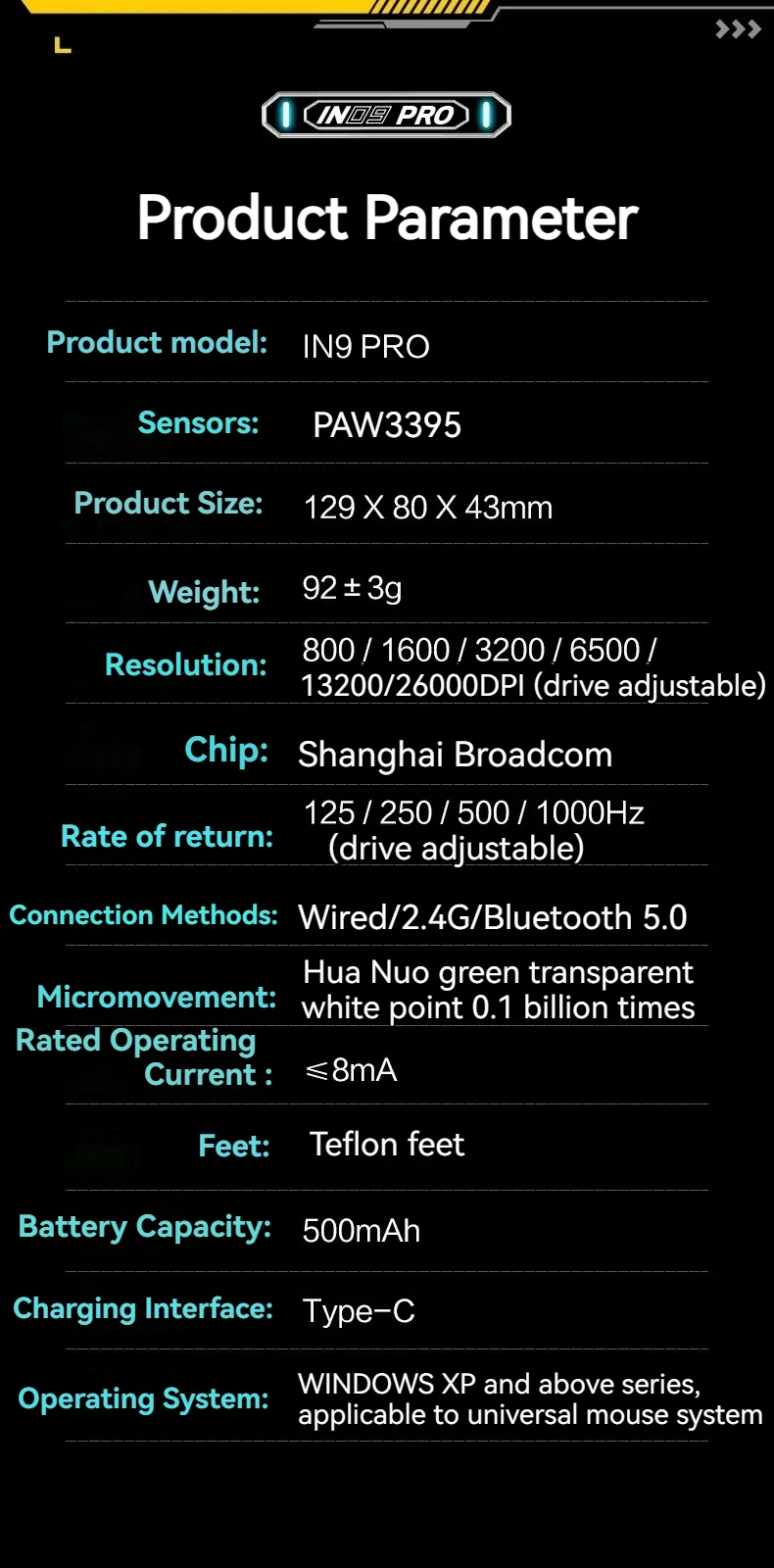 Product model: IN9 PRO
